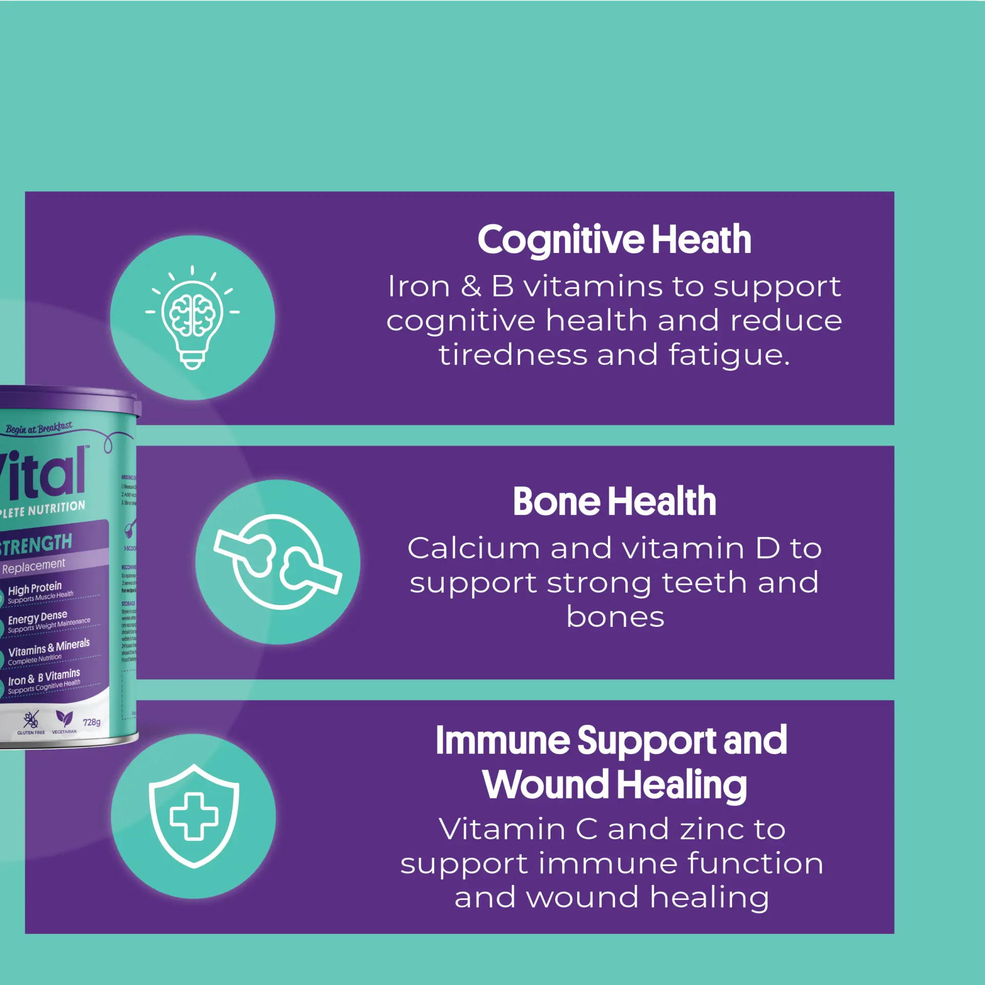 • Source of Iron & B Vitamins Support Cognitive Health