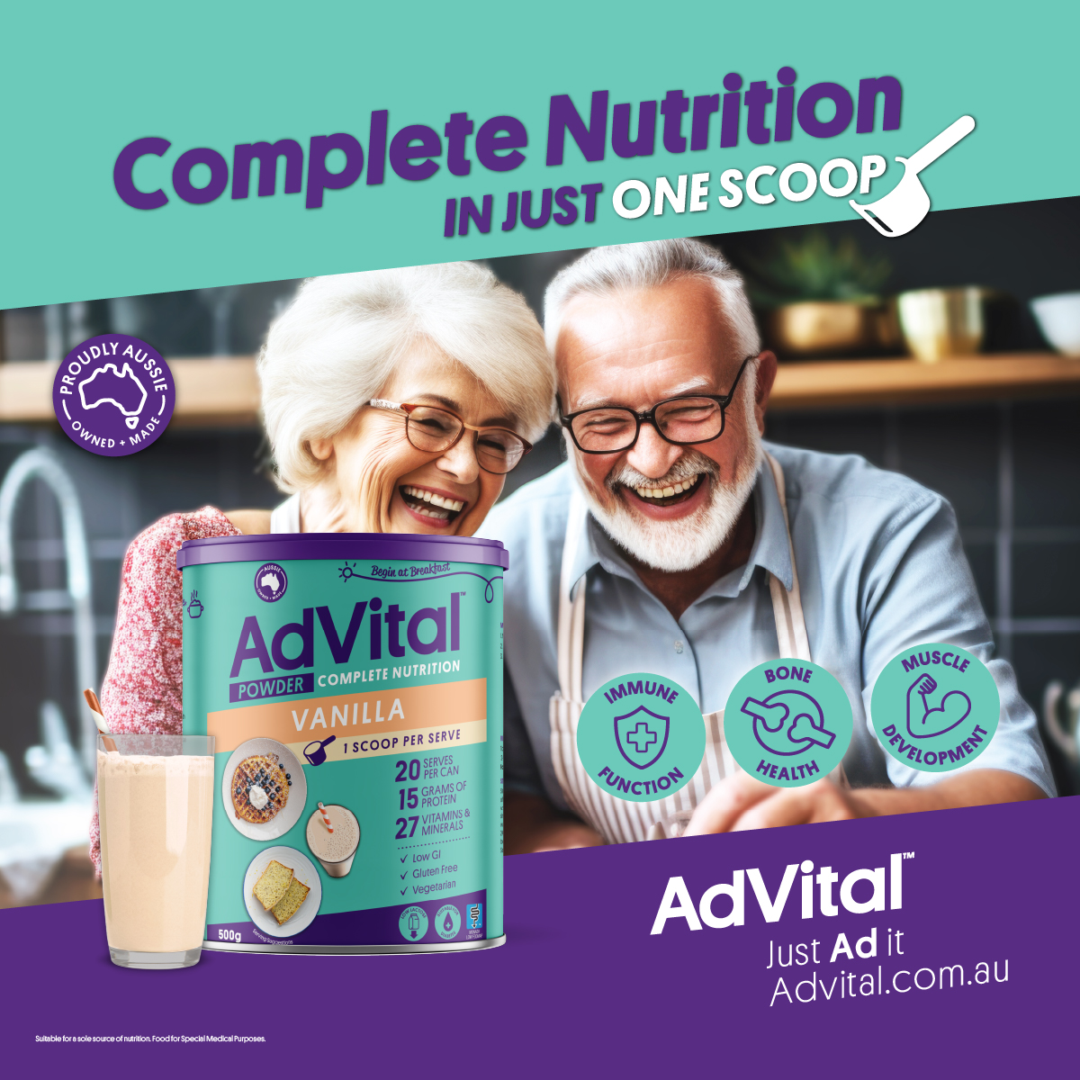 Backed by science, AdVital Powder is specifically formulated for adults and children who are unable to meet nutritional needs through diet alone. AdVital Powder benefits people with reduced appetites increased nutritional requirements or gastrointestinal conditions that can lead to malabsorption (e.g. IBS, Coeliac Disease). AdVital Powder is also low GI and suitable for people with diabetes and pre-diabetes.